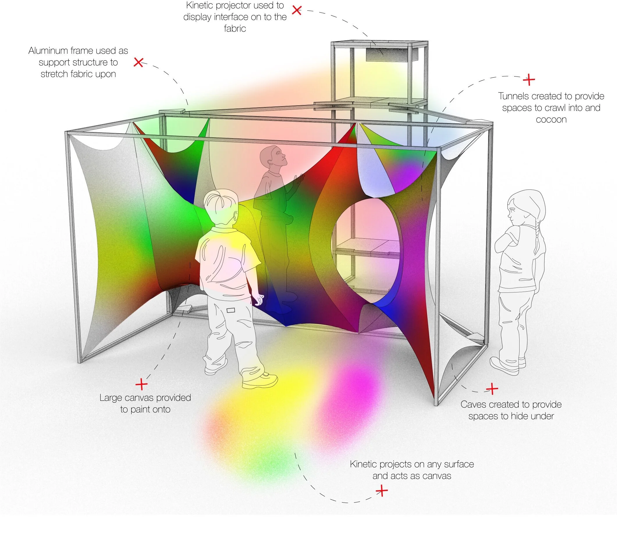 Output: 2 tensile structure designs, 2 interactive interfaces, Installation and user evaluation at Fort Wayne